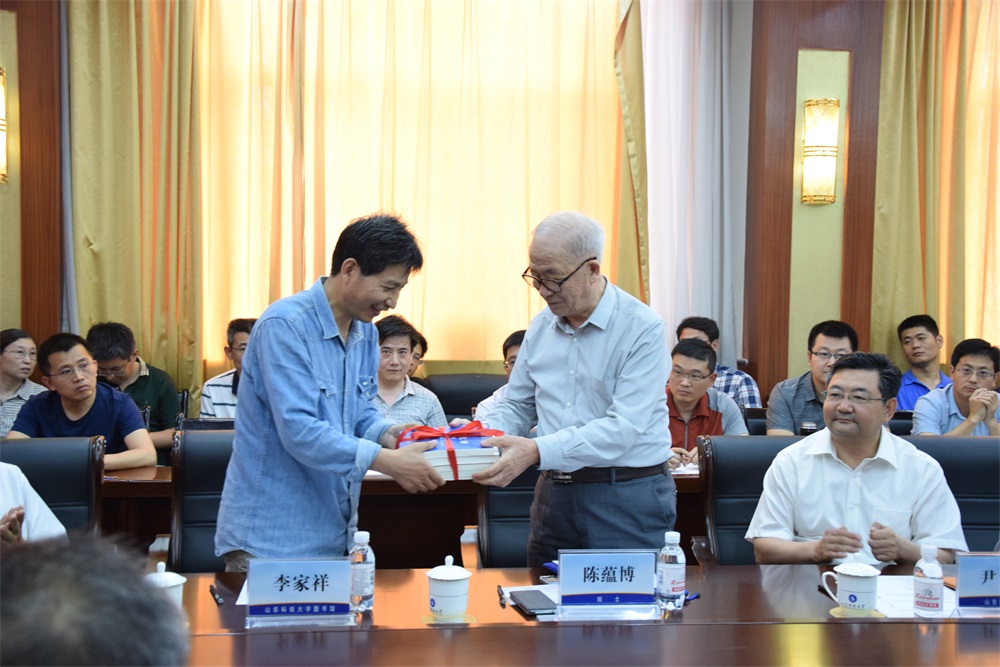捐赠仪式之后,崔洪芝院长汇报了学院在陈院士关怀支持下取得的发展成绩和下一步的发展目标与措施;王忠卫、李廷希、孙金全等受院士创新基金资助和院士奖教金奖励的老师,先后汇报了各自的研究方向、取得的研究成果和今后的努力方向;崔蓝月、李昱杰等6名2017-2018年度院士奖学金获得者,分别向院士汇报了各自学习、成长情况。汇报的师生均表达了对陈院士亲切关怀的感激之情。