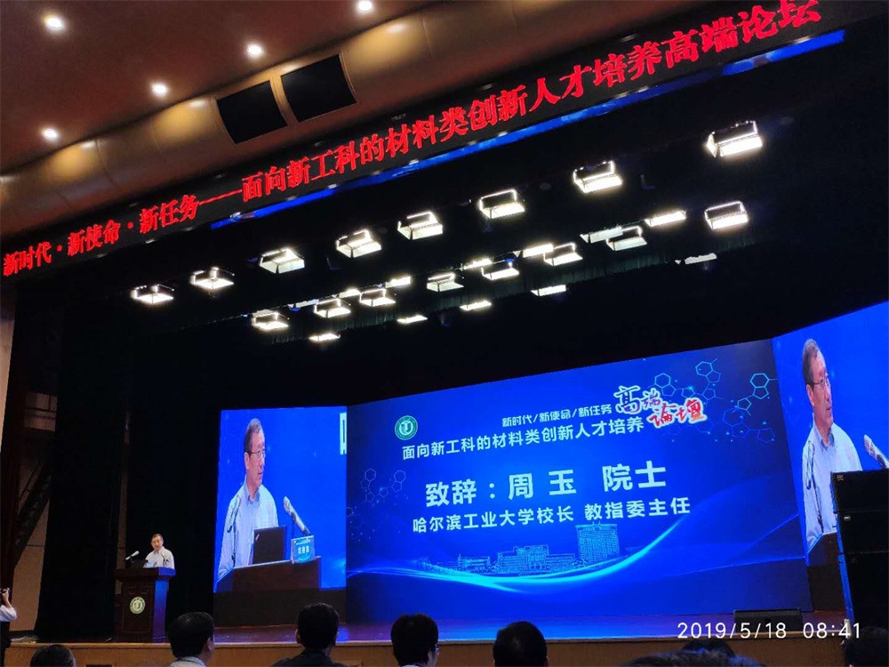 论坛期间,哈尔滨工业大学校长、教指委主任周玉院士为大会致辞。他希望大家聚焦“培养人”这一根本使命,抓住振兴本科教育这一核心,加快构建材料类高水平人才培养体系,全面提高人才培养能力。教育部高教司理工处副处长杨秋波在开幕式上致辞。他指出,此次论坛的召开非常及时和必要,论坛主题贴合当前我国高等教育改革发展的新形势、新任务,对推动材料类本科人才培养改革创新具有重要意义。杨秋波随后作了题为《新工科建设:形势、进展与任务》的主旨报告,就新工科建设的初心与使命、新工科建设的整体布局与进展、新工科再深化的思考等进行了深入分析与阐述。