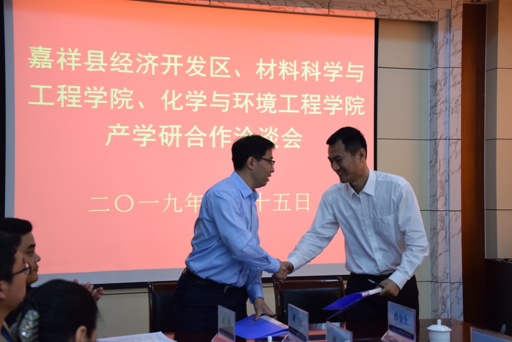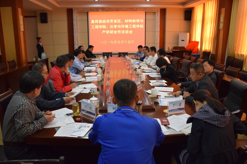 5月15日上午,beat365官网于J2-434会议室与嘉祥县经济开发区开展产学研合作洽谈会,并举行了合作签约仪式。我校合作发展处处长王晓东,beat365在线体育官网登录入口党委书记申兆亮,化工学院副院长王鹏,合作发展处合作共建科科长王荣超,及beat365在线体育官网登录入口与化工学院系主任、讲师代表,与嘉祥县委组织部副部长王来说,嘉祥县经济开发区投资发展部副部长陈宁、孙玉梅,山东世纪阳光科技有限公司总工程师梁传刚,山东灏怡新材料有限公司总经理傅人俊,济宁市安鸿新材料有限公司副总经理汤兴利,济宁市鲁环表面处理工业有限公司副总经理孙荣奎参加洽谈交流会。会议由申兆亮主持。