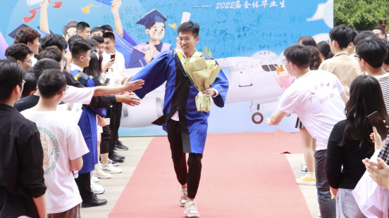 踏过红毯、迈向成功;搭载飞机、翱翔蓝天。6月14日、17日,beat365在线体育官网登录入口各专业教师代表分别为2022届毕业的研究生和本科生颁发了毕业证书,并与毕业生合影留念。毕业生共同踏过红毯,最后一次在校园里展示自己的青春风采,以这种特别的方式为大学生涯画上一个圆满的句号,踏上人生新征程。