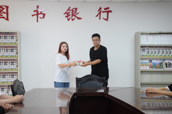 捐赠仪式上,毕业生代表向图书银行捐赠了学习资料与笔记,毕业生代表孙思雨分享了自己在图书银行学习复习的经历,并由衷地感谢学院提供的良好学习环境。图书银行负责人赵锋代表图书银行接受捐书,向关心支持图书银行建设的老师及历届毕业生表示感谢,并且承诺会坚持做好图书银行的建设工作,为同学们提供更好的服务。