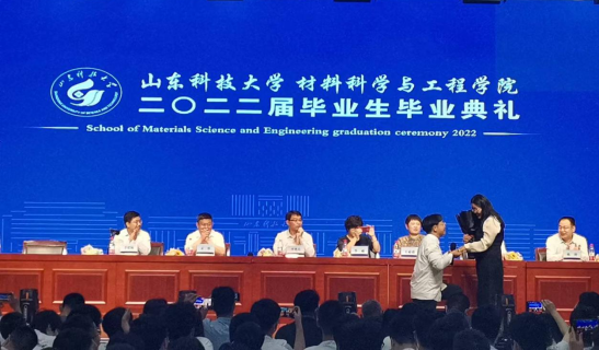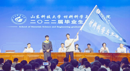 典礼上本科生毕业生代表韩润昊发言,他表示将牢记惟真求新的校训,传承恩师的教诲,勇做走在时代前列的奋进者;研究生毕业生代表马国梁发言,他向学院老师的殷切教诲和悉心指导表示衷心感谢,希望beat365在线体育官网登录入口全体在校生能够将建设学院的大旗继续传承下去。在现场“材通穹宇,料定天下”的欢呼声中,韩润昊将学院院旗传递到在校生代表甄宇扬手中。