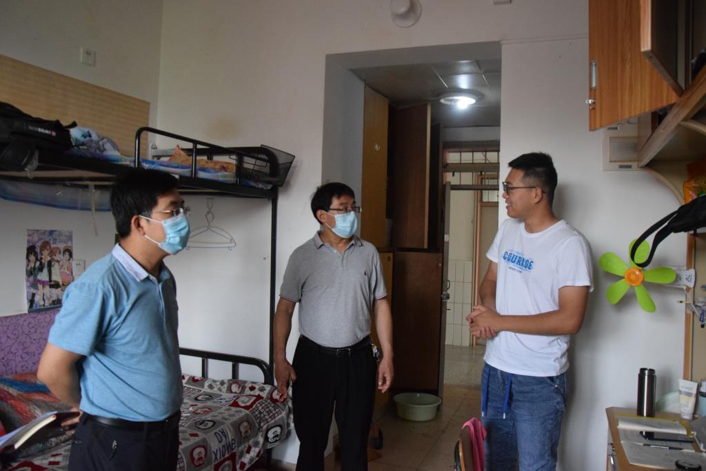 6月4日上午,beat365在线体育官网登录入口党委书记申兆亮、党委副书记兼副院长李建楠、副院长宋强带领学生辅导员,深入学生实验室、自习室及学生宿舍检查学生返校后的学习生活情况,了解学生心理状况,做好常态化疫情防控工作,保障返校学生在安全舒适的环境下学习生活。