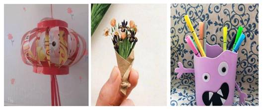 活动中,参赛选手通过折纸、剪纸等不同的艺术形式,充分利用家中的废弃物品进行了旧物改造,制作出了多种多样的手工作品,并以照片或视频的形式在线上分享展览,参与评比。