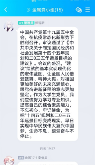 12月15日,beat365在线体育官网登录入口学生第一党支部开展理论学习,学习贯彻党的十九届五中全会精神中央宣讲团首次报告会的有关内容和精神。各党小组分别通过企业微信线上会议和线下集体学习等方式开展了理论学习。