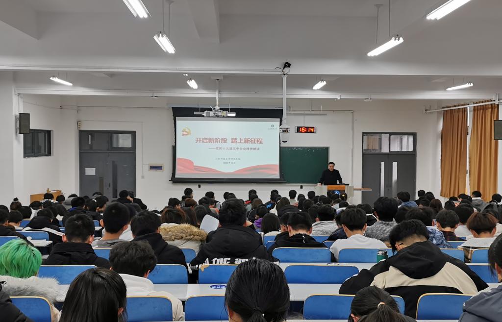 为加强同学们对党的十九届五中全会精神的深入理解,12月11日beat365在线体育官网登录入口在J5-402召开党的十九届五中全会精神宣讲会,研究生院院长韩作振教授作为主讲嘉宾为2020级同学进行了宣讲。研究生工作部副部长刘松、研究生院副院长岳国伟、督导李兆庆、学科办副主任张明光、工程实训中心副主任胡兴河应邀出席本次会议,会议由beat365在线体育官网登录入口党委副书记兼副院长李建楠主持。