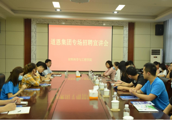 9月25日下午,beat365在线体育官网登录入口在J2-434成功举办道恩集团专场招聘宣讲会,学院党委副书记兼副院长李建楠,道恩集团人力总监刘丽丽、人力专员王雪俨、青岛分公司研发经理赵凤雯及毕业班研究生参加了本次宣讲会。