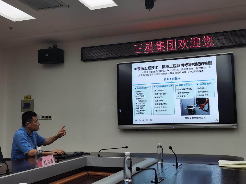 在座谈会上,李文生教授介绍了个人科研情况。三位教授与企业技术人员就有关技术问题进行了深入交流。申兆亮就进一步做好双方合作提出了意见建议。双方就科研项目合作、本科生实习实践等进行了深入探讨。