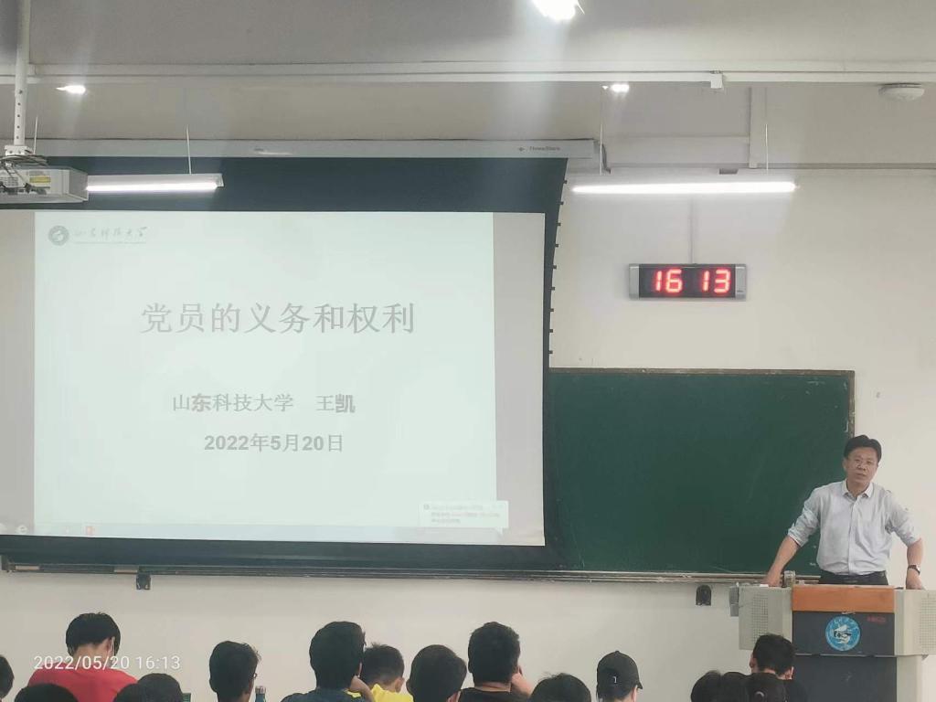 5月20日下午,在J5-302,艺术学院党委书记王凯为我们讲述了《党员的权利与义务》。他详细地介绍了党员的八项权利与八项义务,叮嘱同学们要加强学习,不断提高综合素质;要积极践行社会主义核心价值观、时刻坚持优良作风;要时刻铭记入党初心,发挥先锋模范作用。