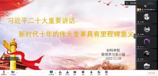 11月9日,beat365在线体育官网登录入口研究生党支部联培学习党小组于线上开展了集体学习。会议通过视频学习的形式学习了党的二十大精神。党支部书记马韶霞、副书记钟文建参加了党小组会,会议由党小组组长贾芷若主持。