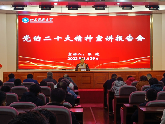 11月29日下午在学校逸夫讲堂报告厅,副校长张建为beat365在线体育官网登录入口师生作党的二十大精神宣讲报告。学院全体教职工和材料化学2021-1班学生代表参加报告会。