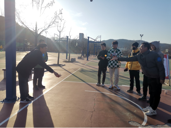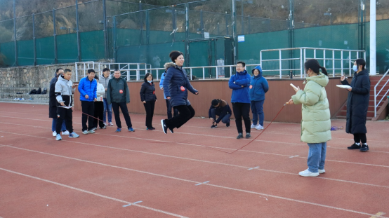 竞赛活动包含两部分内容,一是党的二十大精神知识竞答,二是趣味竞赛活动,其中包括举步维艰、你投我接、众人大跳绳、投弹打靶、篮球罚球、三人四足接力跑、运粮食和智勇大比拼八个竞赛项目。活动中,老师们随机组成参赛队伍,秉承着“友谊第一、比赛第二”的体育精神,全身心投入到活动中,队员之间互相加油打气,现场氛围热烈,欢声不断。在现场服务的学生会素质拓展部的工作人员也被老师们的热情感染,李洪旭同学说到:“在活动中看到了老师们的另一面,被他们团结协作认真比赛的热情鼓舞,听到老师们爽朗的笑声都不觉得天气寒冷了”。