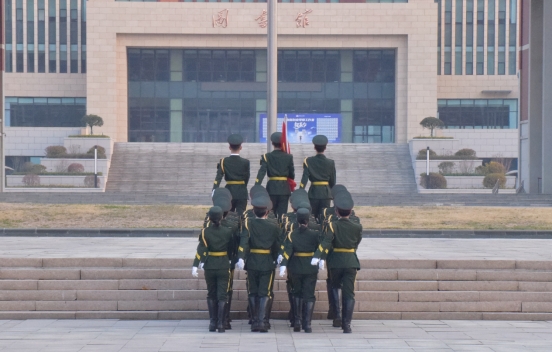 早晨6:30,升旗仪式正式开始。国旗护卫队队员迈着矫健的步伐护送国旗至升旗台。现场氛围庄严肃穆,伴随激昂、高亢的《义勇军进行曲》,五星红旗冉冉升起,全体师生向国旗行注目礼。
