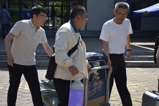 学院在深入调研毕业生离校困难、统计毕业生离校用车需求的基础上,分批次组织教工党员,一同深入毕业生宿舍与学生深入交流,临行前为毕业生送上祝福并帮助毕业生运送行李。期间,学院党委书记申兆亮、院长李辉平、党委副书记兼副院长李建楠,来到毕业生宿舍看望慰问即将离校的同学。金属材料工程2019-4班吕本喜表示:“没想到临走前,学院领导、老师还能帮我们把行李送到站点,感觉非常温馨,特别感谢老师们,同时也祝学校学院发展越来越好!”。