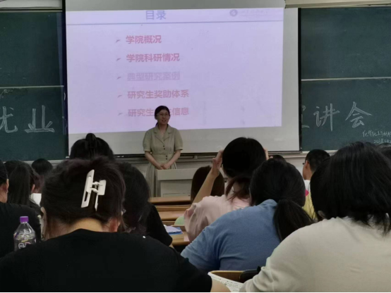 韩永芹以beat365在线体育官网登录入口发展历史为切入点,围绕考生最关心的问题,从学科概况、科研情况、导师队伍、典型研究案例、研究生奖助体系、招生信息等方面向考生做了详细介绍,并就考生关注的导师选择、奖助政策及就业前景等热点话题与学生进行了交流,取得了良好效果,为吸引优秀生源奠定了良好的基础。