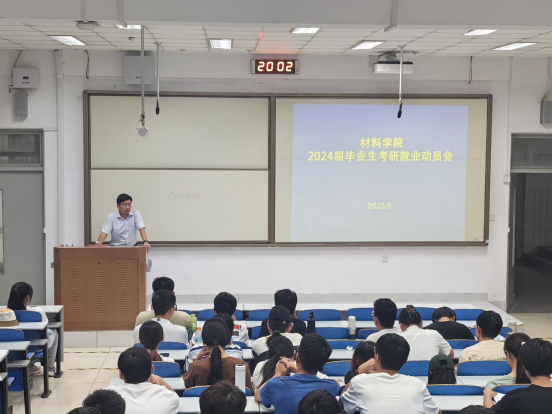 8月30日beat365在线体育官网登录入口在J1-120、124教室举办了2024届毕业生考研指导与就业动员大会。本次大会旨在为全体毕业生提供考研、就业的全面指导,帮助他们合理规划、做好考研就业准备。学院党委副书记兼副院长李建楠、学院副院长韩永芹分别就2024届毕业生就业形势和考研备考进行了专题指导,会议由毕业班辅导员钟文建主持。