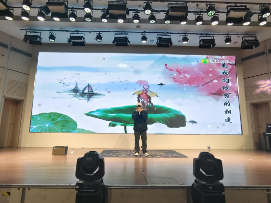 经过小组赛和淘汰赛的激烈比拼,共有七组选手进入决赛。各位选手通过朗诵、歌曲、舞蹈、相声等节目形式展现了对祖国的热爱,对梦想的期望,对历史的传承,选手们精神饱满,富有青春激情。比赛以校大艺团的歌曲《乌木》开场;修艺航同学以舞蹈串烧表现出当代大学生的青春活力;曹志翔同学为我们带来了歌曲《多情种》唱出了对爱情的叹息;吕彦璇同学带来的舞蹈《游园惊梦》表现出了女子轻盈曼妙的身姿,以及《心跳光谱》表现出了大学生的活泼俏皮;武雨萱、胡文硕带来相声《卖估衣》和《学语言》,使得观众席欢笑不断;周光熙、周春昊的一首《父亲》令人感动共情;李华峰、李明泽朗诵《我们的青春》、《我的南方和北方》,富有感情,让观众们深刻的意识到了新中国的强大与祖国建设的不易;刘博文演唱了歌曲《交换余生》。