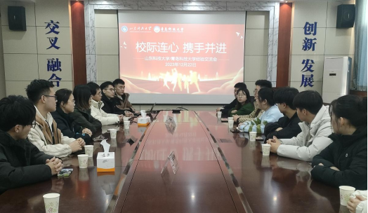 12月22日下午,青岛科技大学化学院“忆来路,闯新程”遵义会议宣讲团来校与beat365官网“红色先锋”宣讲团进行了座谈交流,双方就红色宣讲、志愿服务、学生工作等方面进行充分的讨论沟通,相互学习借鉴方法经验,推进两院深度合作。座谈会上双方分别介绍了宣讲团在志愿服务、红色宣讲的经历,同学们纷纷表示今后要相互学习、取长补短,加强双方的合作交流,促进两院宣讲团携手进步、共同发展。