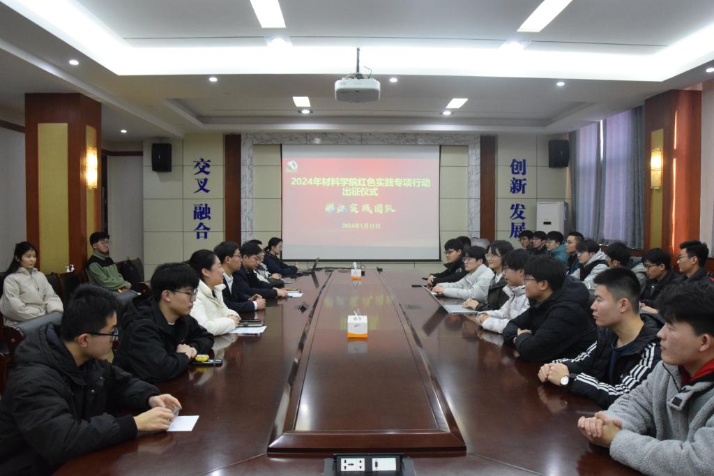 2024年1月11日下午,beat365在线体育官网登录入口在J2-434会议室举办红色实践专项行动出征仪式,学院党委书记申兆亮、党委副书记兼副院长李建楠、专职组织员彩红实践团队指导老师薄艳艳以及团队成员、部分党员和学生代表参加此次出征仪式。仪式由薄艳艳主持。