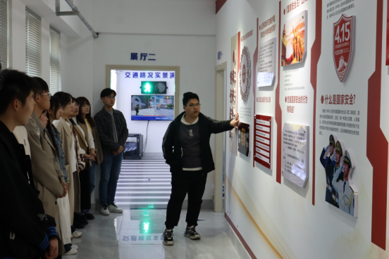在现场,安全教育基地工作人员为学生干部们进行了安全问题的讲解,首先通过纪录短片的形式向参观人员展示了安全教育基地的形成和发展定位,并向大家介绍了国家安全广泛而深刻的含义及其重要性。随后讲解员依次讲解了电信诈骗的危害及防护、毒品危害和认识、实验室安全、交通安全、火灾安全知识以及急救知识。