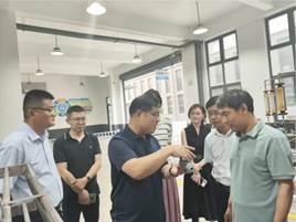 在江花集团,李官镇人大主席高宝、兰山区科技局三级主任科员王善勇、江花集团事业二部总经理李萌萌,事业二部副总经理、省级水表产业计量测试中心筹建负责人莫言田等人接待并参加交流。李官镇人大主席高宝对李辉平一行表示欢迎,李萌萌详细介绍了公司的发展运营情况和科技创新成果与人才队伍建设,莫言田带领参观生产现场及实验室,并介绍测试中心筹建情况及未来发展计划。座谈会上,双方就深化产学研合作、推动科技创新与产业升级进行了深入的探讨。
