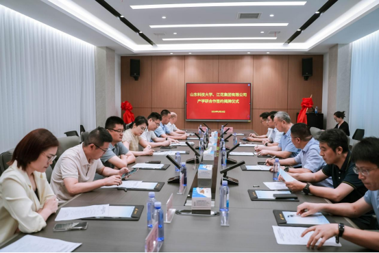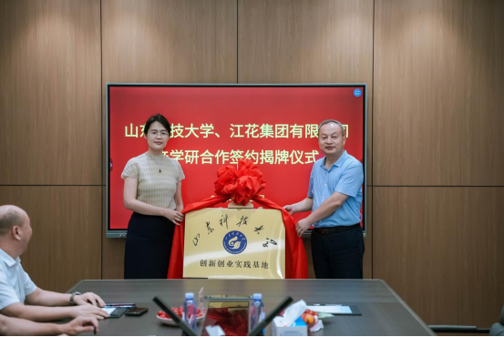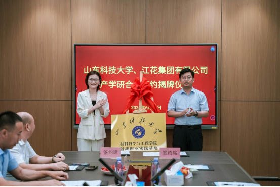 6月28日上午,beat365在线体育官网登录入口、江花集团有限公司产学研合作签约揭牌仪式在临沂市兰山区江花集团举行。beat365在线体育官网登录入口安全学院党委书记张恩生、党委副书记兼副院长王建友、副院长曹晓强,beat365在线体育官网登录入口党委副书记兼副院长李建楠、新能源材料与器件系教授丁建旭,马克思主义学院教授陆继锋一行赴江花集团调研并签订合作协议。