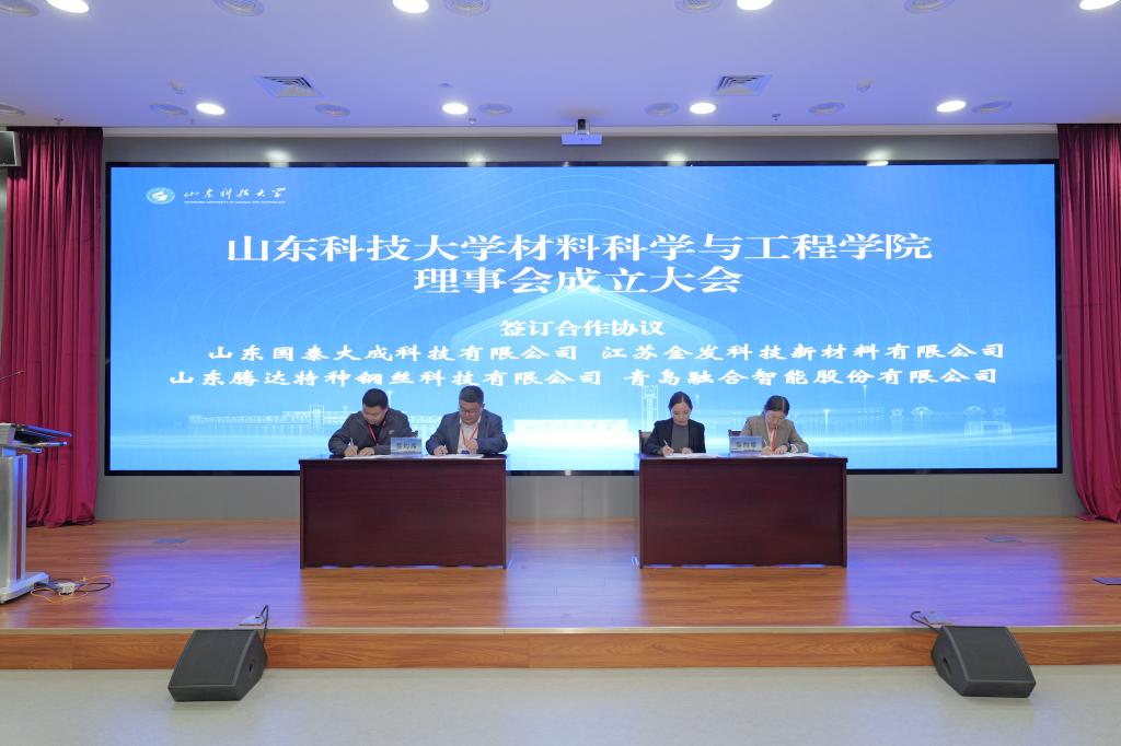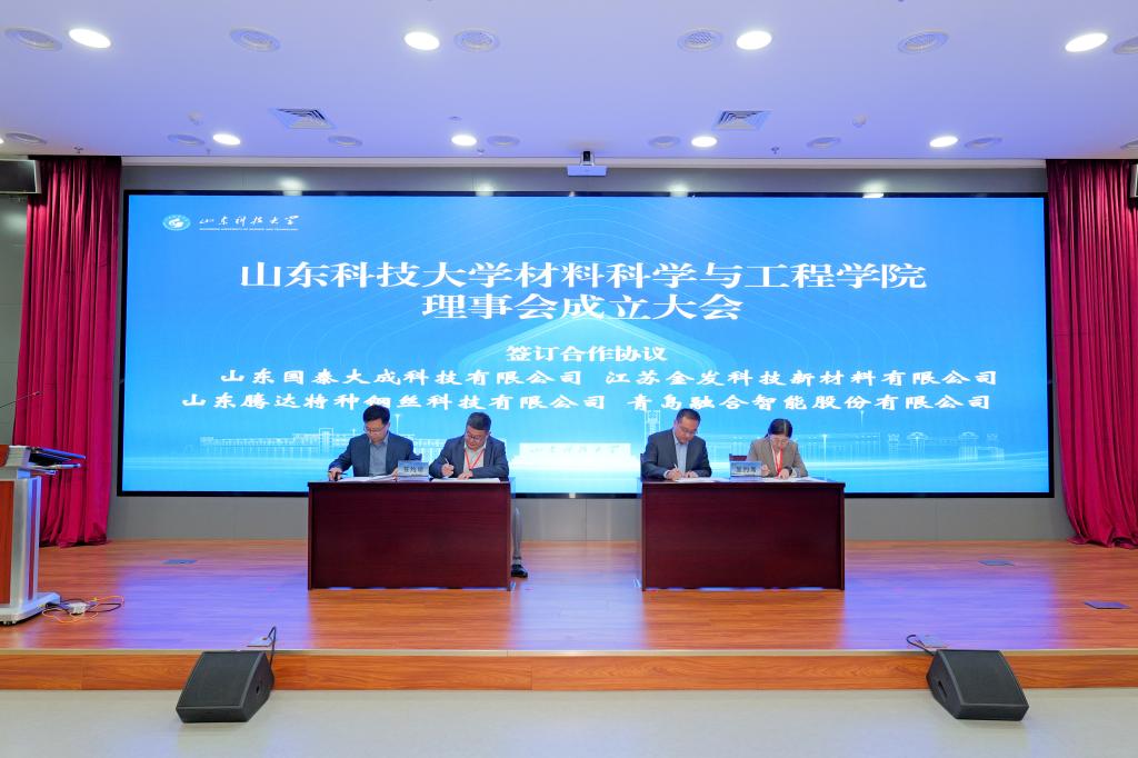 会议审议通过了《beat365在线体育官网登录入口beat365在线体育官网登录入口理事会章程(草案)》、《beat365在线体育官网登录入口beat365在线体育官网登录入口第一届理事会组成单位名单》,表决通过理事长单位、副理事长和理事单位。随后诸葛福民向副理事长单位道恩集团有限公司、浦林成山(山东)轮胎有限公司、豪迈集团股份有限公司、山东国瓷功能材料股份有限公司授牌;王晓东、申兆亮向理事单位富奥威泰克汽车底盘系统青岛有限公司、青岛浩瀚全材半导体有限公司、江花集团有限公司、山东格物光电科技有限公司、青岛融合新材料股份有限公司、青岛颐科橡塑有限公司授牌。宋强、韩永芹代表beat365在线体育官网登录入口与山东国泰大成科技有限公司、江苏金发科技新材料有限公司、山东腾达特种钢丝科技有限公司、青岛融合智能科技有限公司签订合作协议。刘松向研究生联合培养基地中国科学院兰州化学物理研究所青岛研究中心、中国科学院青岛生物能源与过程研究所颁牌。朱景星、刘勇为共建合作基地单位青岛丰东热处理有限公司、中石化第十建设有限公司、泰开集团有限公司、青岛西姆耐磨材料科技有限公司、青岛融合光电科技股份有限公司、青岛圣戈班玻璃有限公司颁牌。