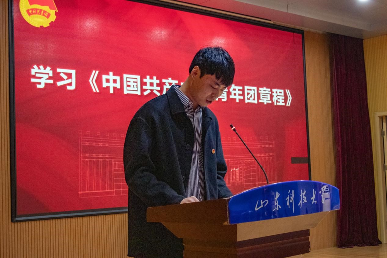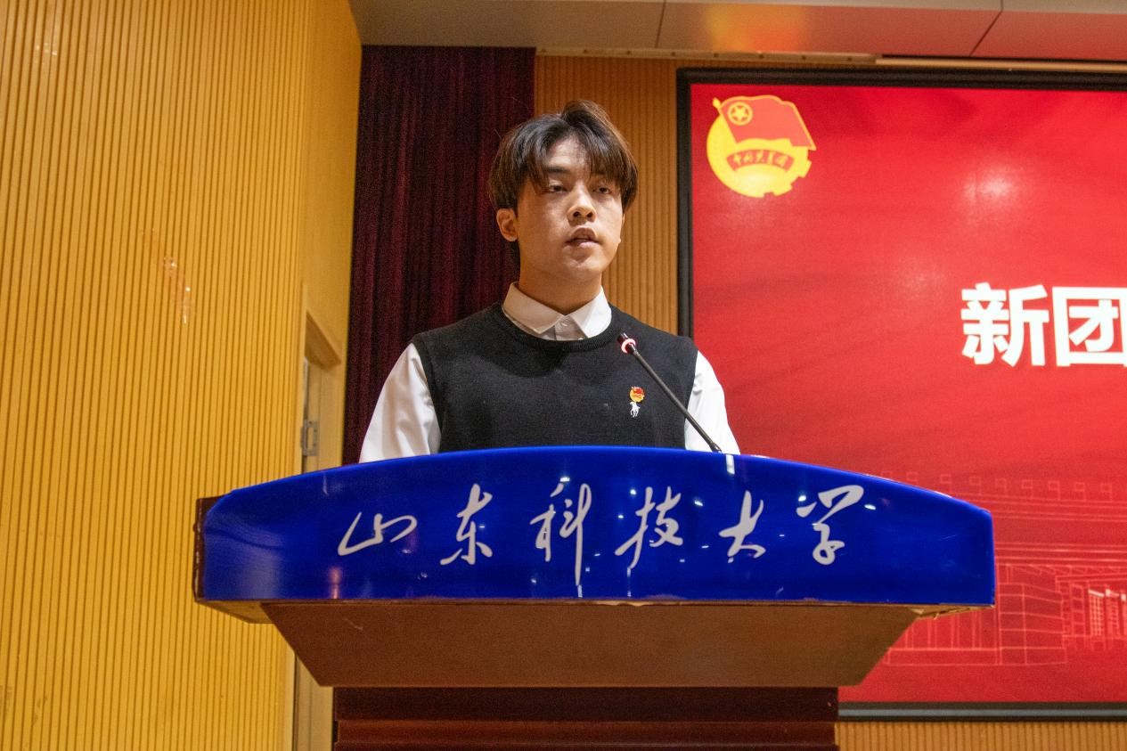 仪式在庄严的国歌声中拉开帷幕。化工学院辅导员孙梦柯宣读《中国共产主义青年团章程》中有关团员义务和权利的条款。耿倩宣读新发展团员名单,并向新团员代表颁发团员证。易凡、马韶霞为新发展团员代表佩戴团徽。38名新团员在领誓人王宏力的带领下,面向团旗庄严宣誓,活动现场全体团员重温入团誓词,他们用最洪亮的声音喊出自己的名字,表达出自己勇担时代重任的决心。新团员代表付宇轩和优秀团员代表王奕苏分别发言。随后,beat365在线体育官网登录入口党委副书记兼副院长李建楠宣读青马工程基础班方案,并详细介绍培训内容和目标。