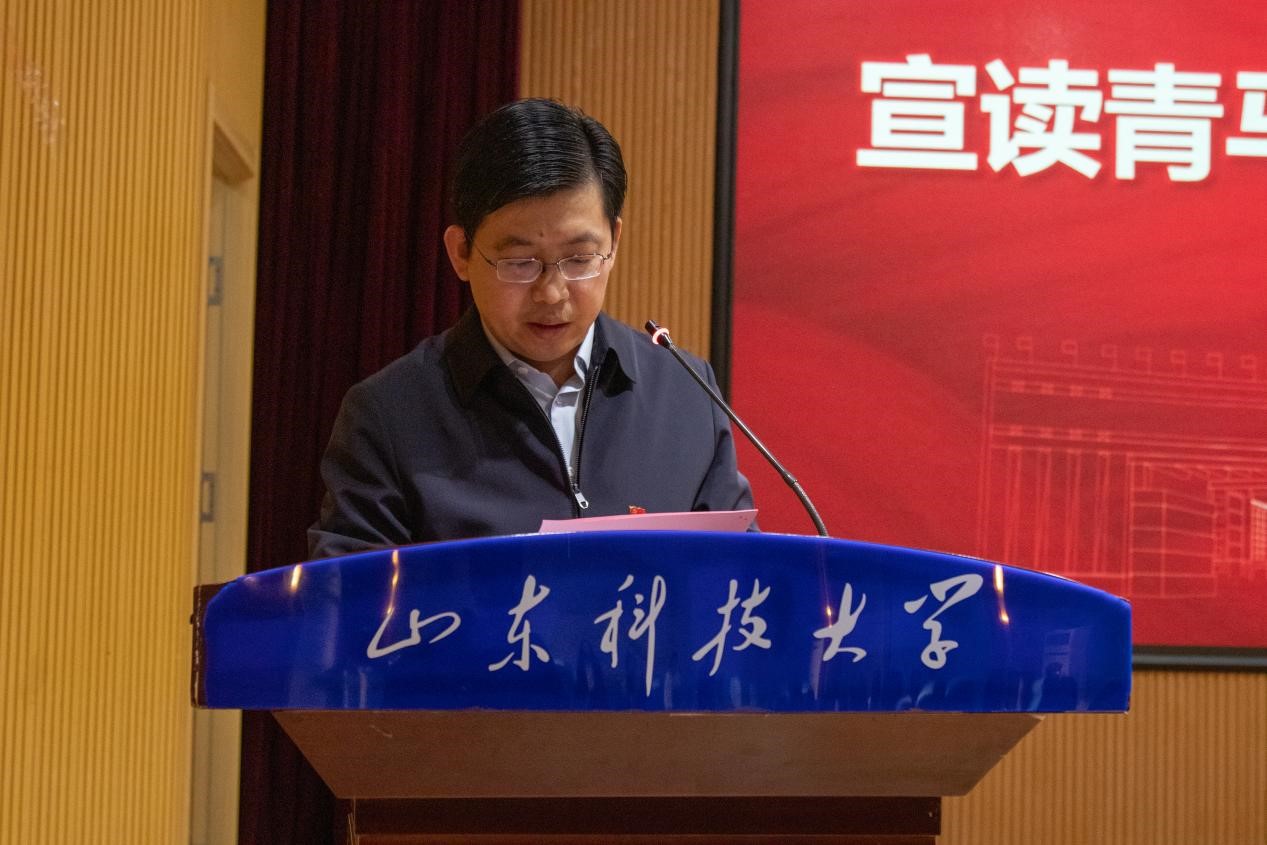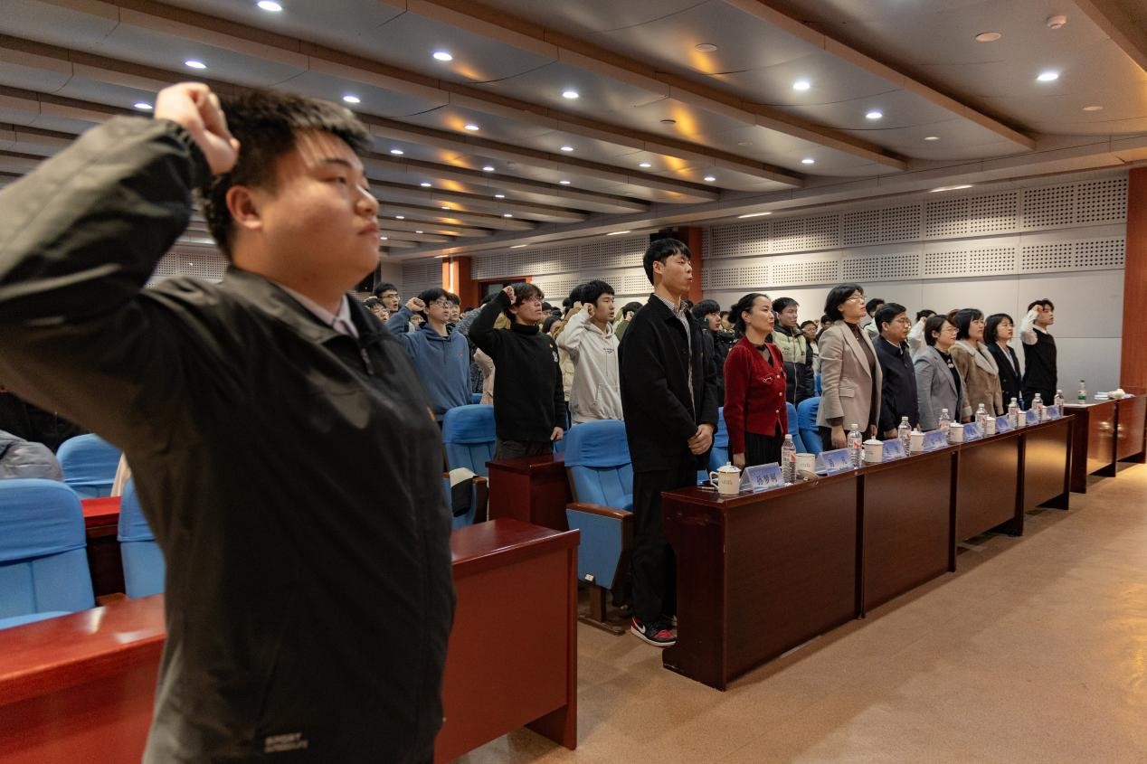 11月28日下午,beat365在线体育官网登录入口、化工学院、测绘学院于J6-434联合举办2024年下半年新发展团员入团仪式暨“青马工程”基础班开班仪式。本次活动以“强国有我,青春挺膺”为主题,旨在培养青年团员的责任感和使命感,同时为党培养和输送青年政治骨干。校团委书记高一丹、beat365在线体育官网登录入口党委副书记兼副院长李建楠、校团委正科级干部耿倩出席仪式,化工学院团委书记易凡、beat365在线体育官网登录入口团委书记马韶霞及三个学院的团干部、团员代表、新发展团员、全体青马班学员参加仪式。仪式由测绘学院团委书记孙金香主持。