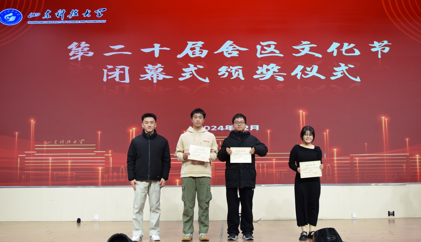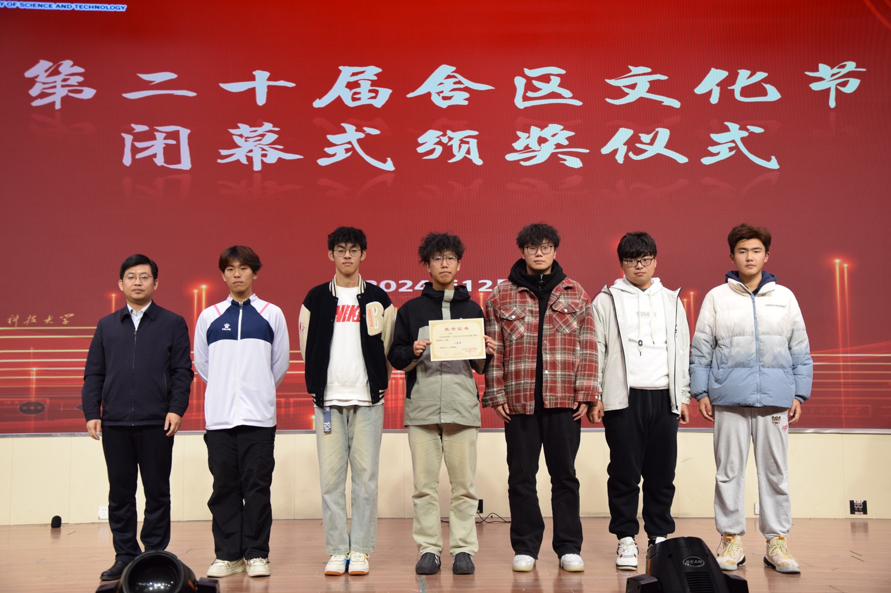 12月2号晚,beat365在线体育官网登录入口在大学生活动中心二楼报告厅举办了舍歌大赛决赛暨舍区文化节闭幕式。本次活动由beat365在线体育官网登录入口团委主办,beat365在线体育官网登录入口自律会办公室承办。院党委副书记兼副院长李建楠,学生工作处公寓管理服务中心主任于海峰,院团委书记马韶霞,辅导员钟文建、石臻、许珍颖、练晓娟,优选计划辅导员王瀚琨、韩恒飞以及学生代表刘烨颉、樊骐恺、苗育成出席本次活动并担任评委。