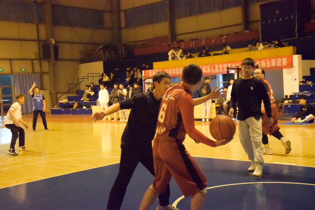 开赛前,李建楠介绍了参加本次活动的学校领导和联系班级的情况。随后,薛庆忠副校长为球赛开球,师生双方相互致意后比赛正式开始。队员们迅速进入到比赛状态,配合有序,全力以赴。老师们凭借着丰富的经验和默契的配合,多次发起进攻,同学们则利用速度和敏捷性,积极拼抢篮板,展开快速反击,场上比分交替上升,双方球员你追我赶。在比赛过程中,老师们不仅展现出了过硬的球技,更体现出了对同学们的尊重与鼓励。他们在激烈的对抗中相互促进,同学们克服了面对领导时的紧张情绪,尽情发挥自己的实力,赛出了风格,赛出了水平。最终教师代表队获得此次友谊篮球赛的胜利。
