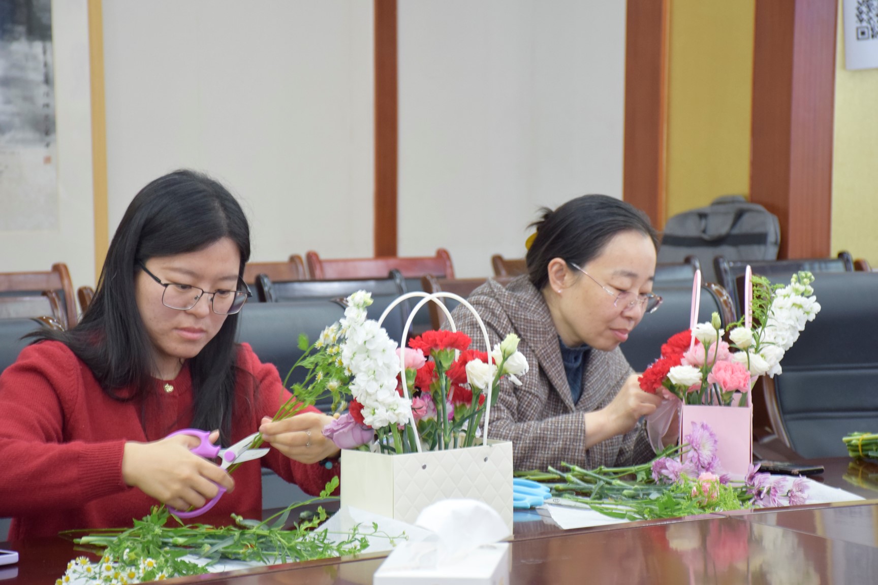 3月7日上午,在第115个“三八”国际劳动妇女节来临之际,beat365在线体育官网登录入口组织全体女教师在J2-434举办“插花艺术,美美与共”主题活动。党委书记申兆亮莅临现场,向全体女教师致以最诚挚的节日祝福。
