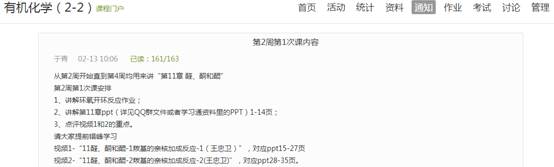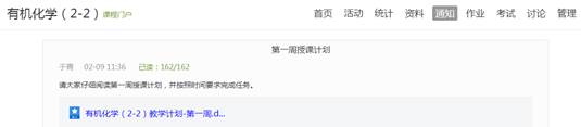 “停课不停学”重要的是“学”,需要从“以学生为中心”出发,提供灵活多样的学习方式。本学期,于青老师承担了高分子2018级1-3班和材化2018级1-2班的《有机化学》教学任务。在获悉需要通过线上模式开展教学时,于青老师认真思考教学方式,制定了前5周的《有机化学(2-2)在线教学计划》,内容包括学习目的和要求、教学重点和难点、教学计划,并详细计划了每部分的授课方式和学习要求。通过试播,她决定采用“直播+讨论+视频观看+在线作业”的方式进行《有机化学(2-2)》课程授课。“线上直播对于习惯了课堂教学的教师来说是一个新的挑战,虽然有许多困难要克服,但只要站在以学生为中心的角度上科学采取措施,创新教学模式,相信也会收到意想不到的效果。”于青说道。