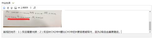 由于《有机化学》课程的重点是教会学生灵活运用所学知识,设计化合物的合成路线、分析反应机理。因此,为了进一步提升学生的学习质量,巩固学习效果,于青老师将“任务点发布”、“签到”、“直播”、“同步课堂”、“主题讨论”、“在线作业”、“测验”、“统计”几大功能相互结合,加强与学生的互动,跟踪每位同学的学习情况,引导学生独立思考,使学生紧跟课堂思路,提升自主学习能力。于青老师及时完成在线作业的批改,对发现的个别问题,直接在评语中指出;对普遍问题或需要注意的问题,则形成文档发布,供同学们查看。同时,在下次直播时加以讲解。
