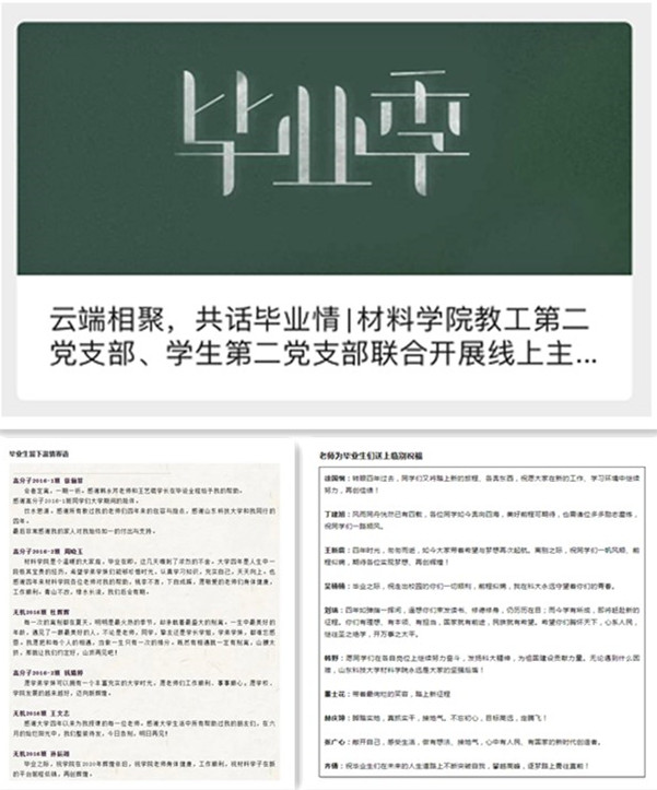 四年时光,匆匆而逝,在毕业生离校之际,beat365在线体育官网登录入口教工第二党支部联合学生第二党支部开展了线上主题党日活动。师生们云端相聚,共话浓浓的毕业情。