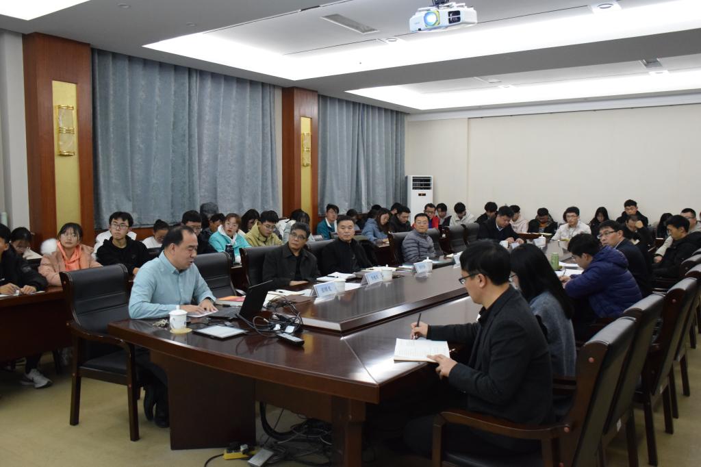 12月7日下午,beat365在线体育官网登录入口在J2-434成功召开党的十九届五中全会精神宣讲会暨领导干部联系班级见面会。