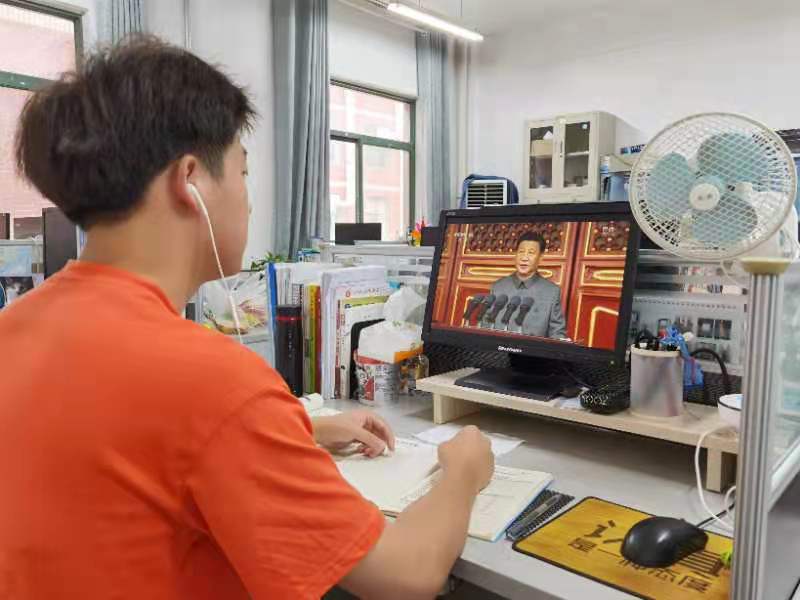 7月1日上午8:00,beat365在线体育官网登录入口组织全体师生观看庆祝中国共产党成立100周年大会。学院领导班子成员、各系(中心)主任、全体师生党员在J2-434会议室收看了大会直播盛况。beat365在线体育官网登录入口小草学堂党支部和各班级同学分别在J2-222和J14-203、309、319、321教室进行了集中观看。