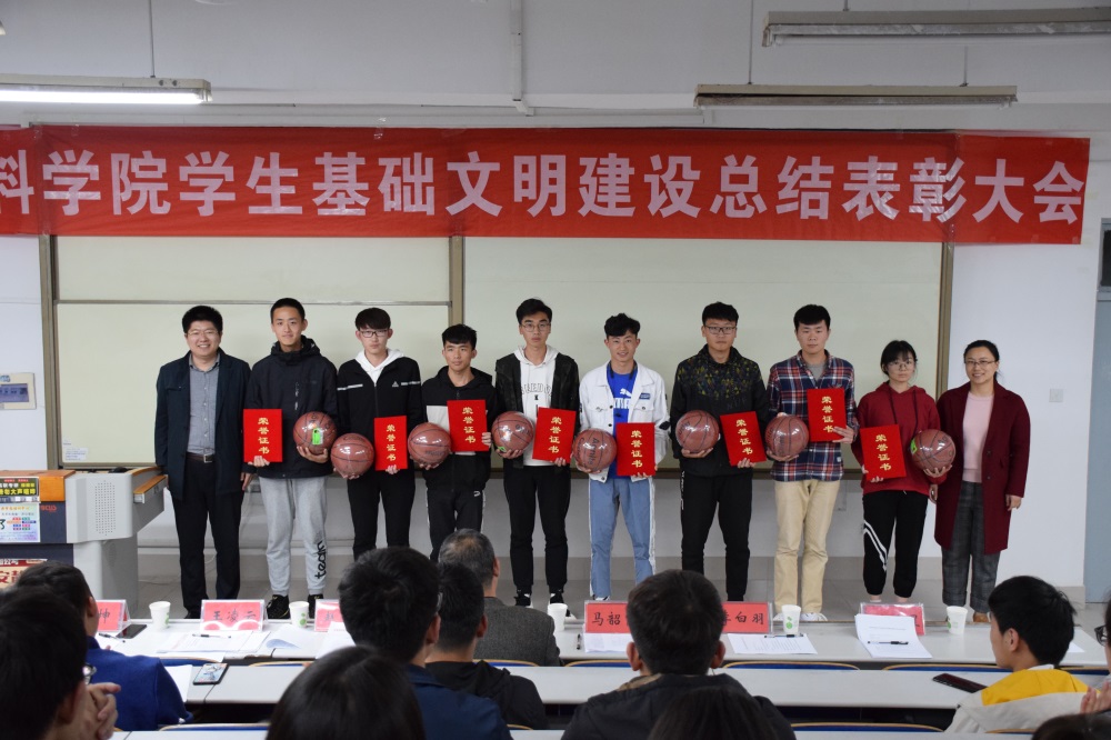 4月28日晚,beat365官网在S1-103教室举行2018年度基础文明表彰大会。院党委副书记、副院长韩明臣,学生工作部公寓管理中心主任赵洋,团委书记马韶霞,全体专兼职辅导员,校自律会、楼管会、各兄弟学院自律会主要负责人,院学生会、自律会以及各班级学生党员、主要学生干部,受表彰先进集体和个人代表参加了大会。
