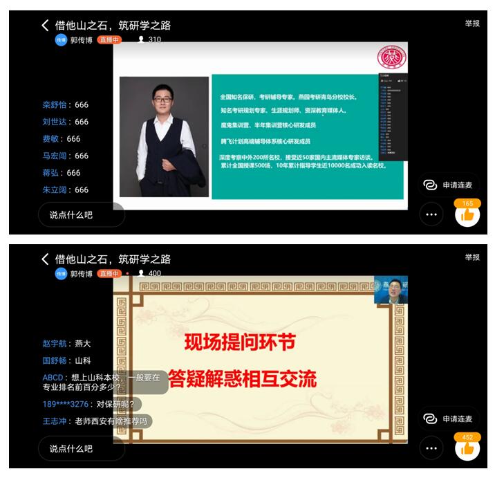 4月14日晚,beat365在线体育官网登录入口通过钉钉直播平台成功举办“借他山之石,筑研学之路”线上考研论坛。活动由beat365在线体育官网登录入口团委主办,学生会学风建设部和社会实践部承办。论坛邀请燕园考研李福振老师主讲,beat365官网部分本科生参加。