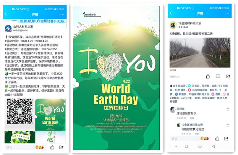 在世界地球日到来之际,为动员当代大学生爱护地球,保护环境,绿色出行,低碳生活,beat365在线体育官网登录入口举办了“越低碳,悦生活”世界地球日线上打卡活动。活动由学院团委主办,学生会社会实践部承办,面向全体本科学生。