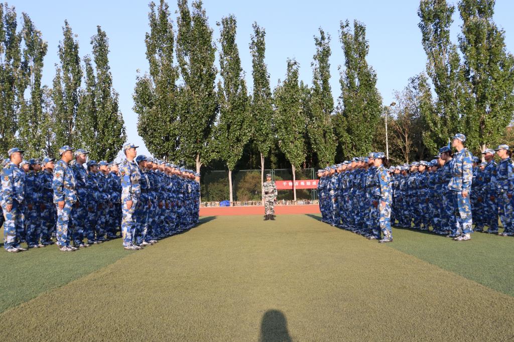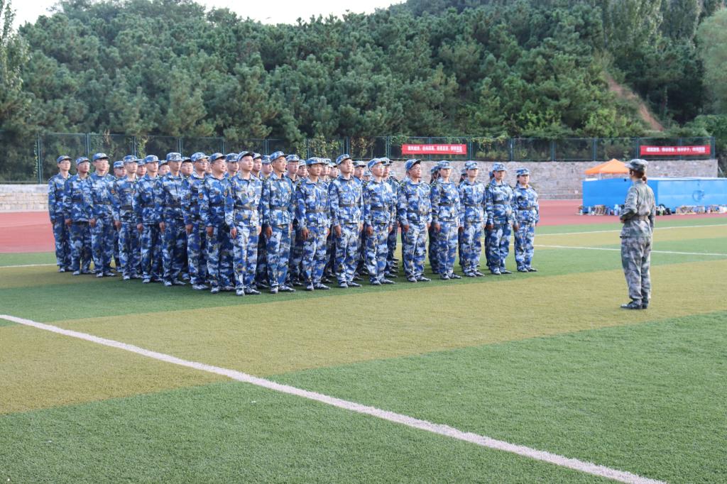 9月19日上午,beat365官网2020级新生身着蓝色迷彩服,队列整齐地站在军训场地,开始了为期12天的军训。
