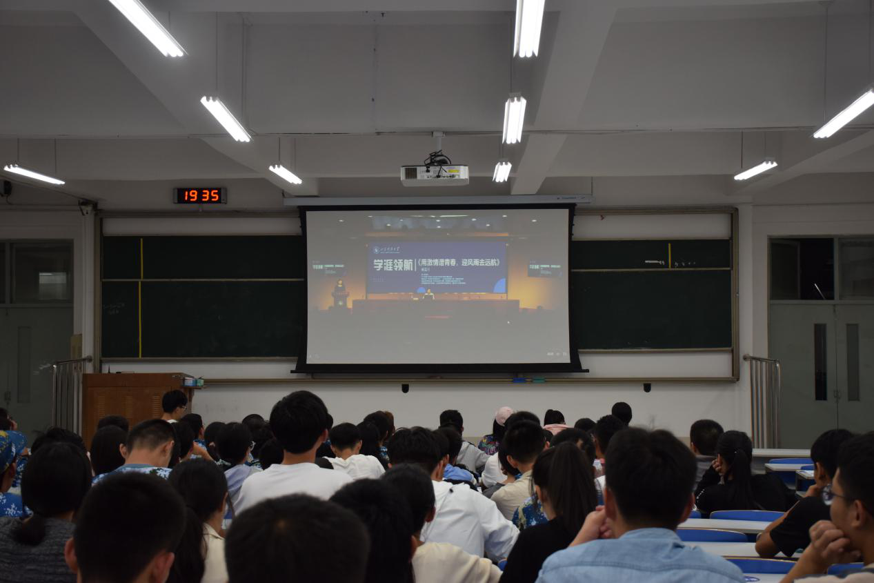 根据学校入学教育工作安排,9月20日晚开展“学涯领航”报告活动,报告由beat365在线体育官网登录入口高分子与材料化学系教师、全国高校“百名研究生党员标兵”获得者崔蓝月作为主讲,beat365在线体育官网登录入口2020级全体本科生在J14-121和J14-123采用视屏会议的方式参加了报告会。