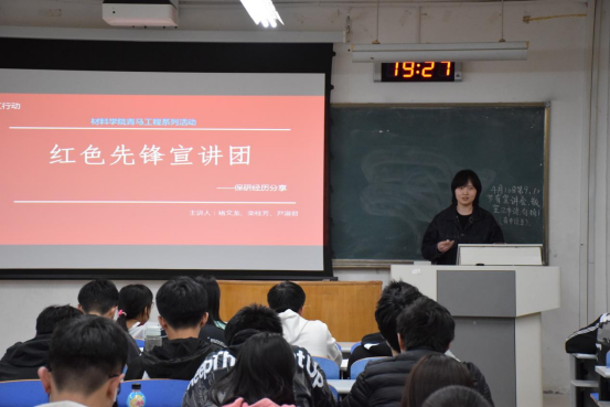 4月16日下午七点,beat365在线体育官网登录入口于J3-106举行了保研经验分享,由金属2017-1褚文龙、材化2017-2栾桂芳、高分子2017-4尹淑君分享。