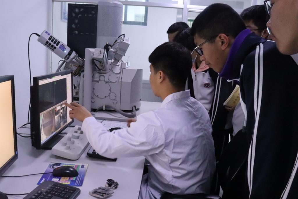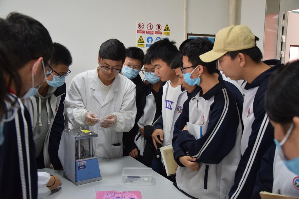 随后,致远中学90余名师生通过分组的形式在beat365在线体育官网登录入口志愿者的带领下先后进行了“材料之美”科普交流和实验室参观活动。beat365在线体育官网登录入口专业老师孙金全、董士花、马勇及研究生进行细致讲解并进行生动演示,带领致远中学师生亲身体会了形状记忆合金、聚氨酯泡沫材料的特性和锂离子电池组装的完整过程;参观了beat365在线体育官网登录入口金相显微镜实验室、扫描电镜实验室以及透射电镜实验室,了解了实验器材的基本信息与简单使用,深切感受了材料的微观之美。