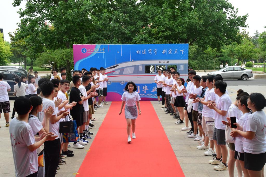 迈出“动车”、踏上红毯;歌声环绕、温情送别...6月24日,beat365在线体育官网登录入口各专业教师为每位2021届毕业生发放毕业资料,与毕业生合影,呈现了一场特别的送别仪式。