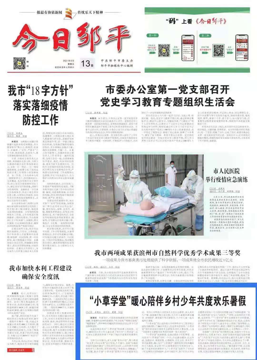 【青春助力 情暖童心—山东邹平市“小草学堂”暖心陪伴乡村少年儿童共度欢乐暑假】
