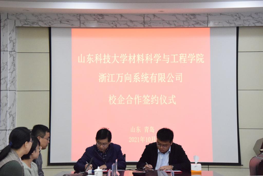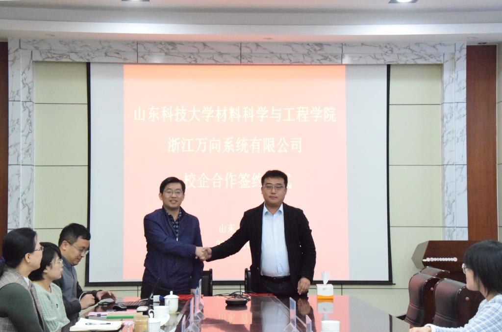 10月20日上午,beat365在线体育官网登录入口与浙江万向系统有限公司在J2-434举办校企合作签约仪式。浙江万向系统有限公司常务副总经理王东、市场总监章胜凯、招聘专员王瑞鑫一行3人,beat365在线体育官网登录入口党委书记申兆亮、党委副书记兼副院长李建楠、团委书记马韶霞、金属材料工程系系主任孙金全及部分金属材料工程系教师代表参加了签约仪式。仪式由李建楠主持。