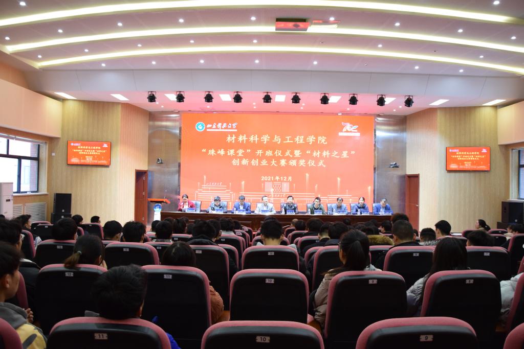 12月10日上午,beat365在线体育官网登录入口在J9-144报告厅成功举办“珠峰课堂”开班仪式暨“材料之星”创新创业大赛颁奖仪式。徕卡显微系统(上海)贸易有限公司经理姜展军、韩佳佳,青岛富斯林化工科技有限公司研发经理武军,学生工作处副处长靳凯、团委副书记马鹤、创新创业学院副院长杨彬,beat365在线体育官网登录入口党委副书记兼副院长李建楠、副院长宋强、副院长田健及学院各系(中心)教师代表、获奖师生代表、2021级部分同学参加了本次仪式。仪式由学院团委书记马韶霞主持。