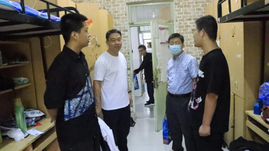 由于疫情原因,刚刚步入大学校门的新生无法回家,不少大一新生都是第一次独行远方,在陌生的环境里,又逢中秋,难免思乡心切。为此,学院领导携全体辅导员来到宿舍慰问大一新生。申兆亮详细询问了同学们住宿和生活方面的适应情况,并鼓励同学们要积极参加各项活动、增强与同学们之间的交流,要尽快熟悉校园环境、及时与家长汇报在校学习生活状况,有任何困难也要及时跟学院反应,学院也将做好同学们坚实的后盾。